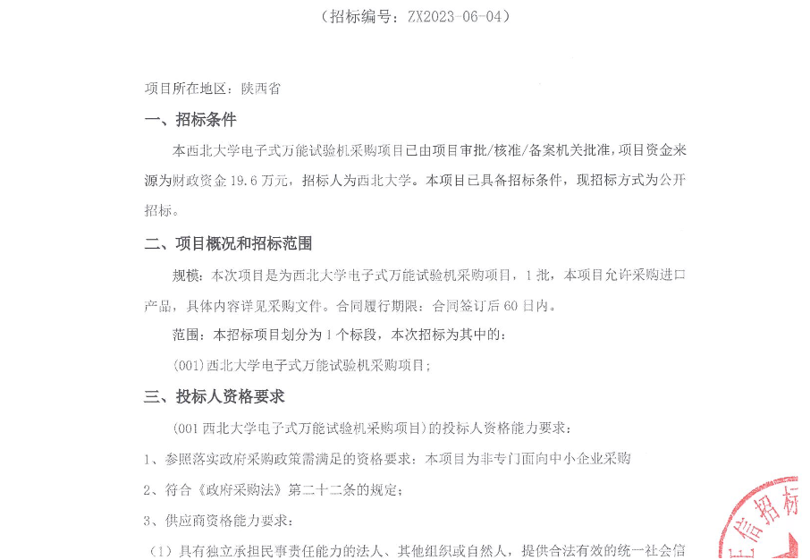 赢博官方(中国)总部电子式万能试验机采购项目招标公告 作者: 编辑:采购与招标办公室 时间:2023-06-16 原公告链接:http://bulletin.sntba.com/biddingBulletin/2023-06-16/573127.html
