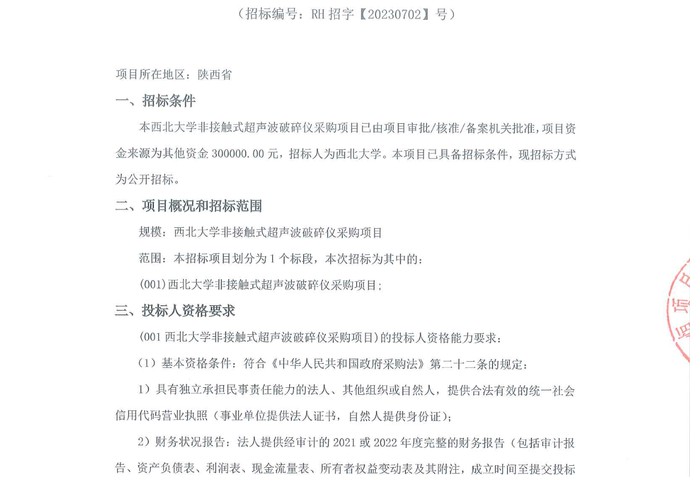 赢博官方(中国)总部非接触式超声波破碎仪采购项目招标公告 作者: 编辑:薛利娟 时间:2023-08-06 原公告链接:http://bulletin.sntba.com/biddingBulletin/2023-08-04/603235.html