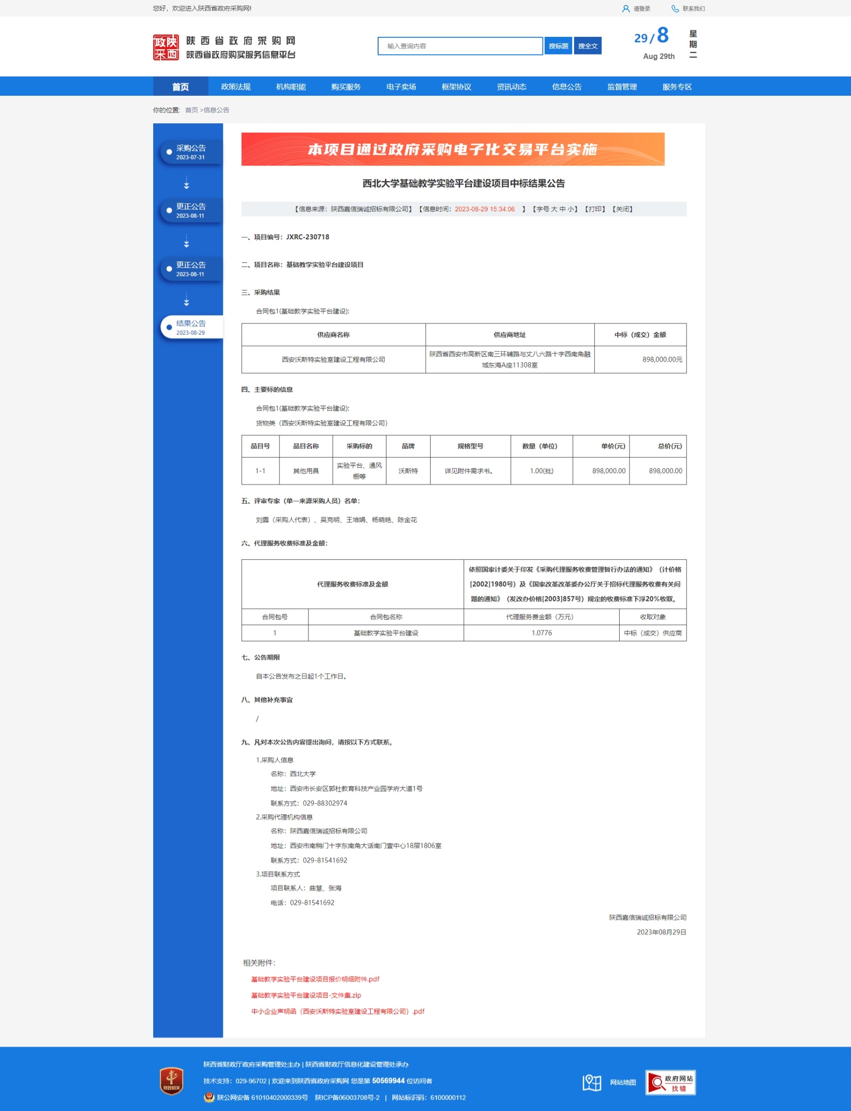 赢博官方(中国)总部基础教学实验平台建设项目中标结果公告 作者: 编辑:采购与招标办公室 时间:2023-08-29 原公告链接:http://www.ccgp-shaanxi.gov.cn/freecms/site/shaanxi/ggxx/info/2023/8a69c4438a23269f018a3ff298226eae.html?noticeType=001021¬iceId=a20d4fa8-463f-11ee-9a8e-08c0eb20c666
