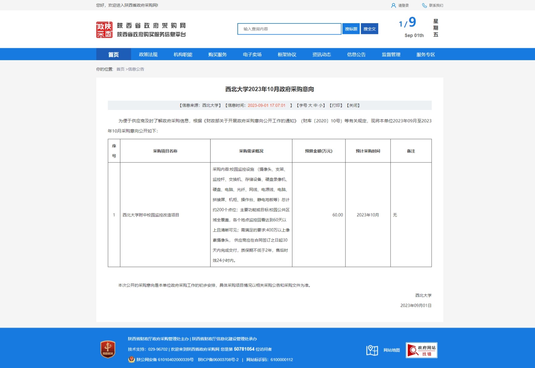 赢博官方(中国)总部2023年10月政府采购意向 作者: 编辑:采购与招标办公室 时间:2023-09-01 原公告链接:http://www.ccgp-shaanxi.gov.cn/freecms/site/shaanxi/ggxx/info/2023/8a69c1f48a4f6e00018a4ffdcd092e11.html?noticeType=59¬iceId=1e3b5616-48a8-11ee-9a8e-08c0eb20c666