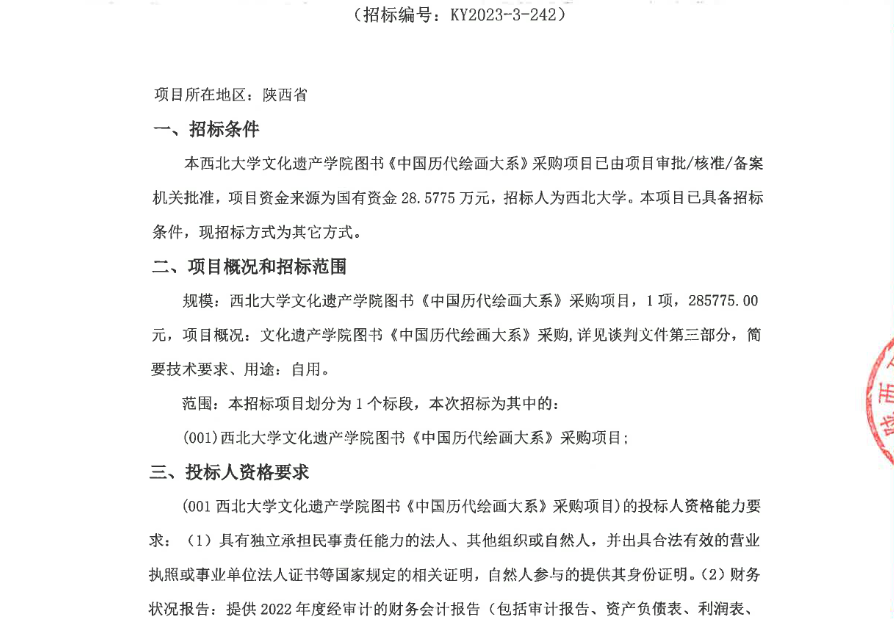 赢博官方(中国)总部《中国历代绘画大系》采购项目竞争性谈判公告 作者: 编辑:采购与招标办公室 时间:2023-09-15 原公告链接:http://bulletin.sntba.com/biddingBulletin/2023-09-14/664967.html