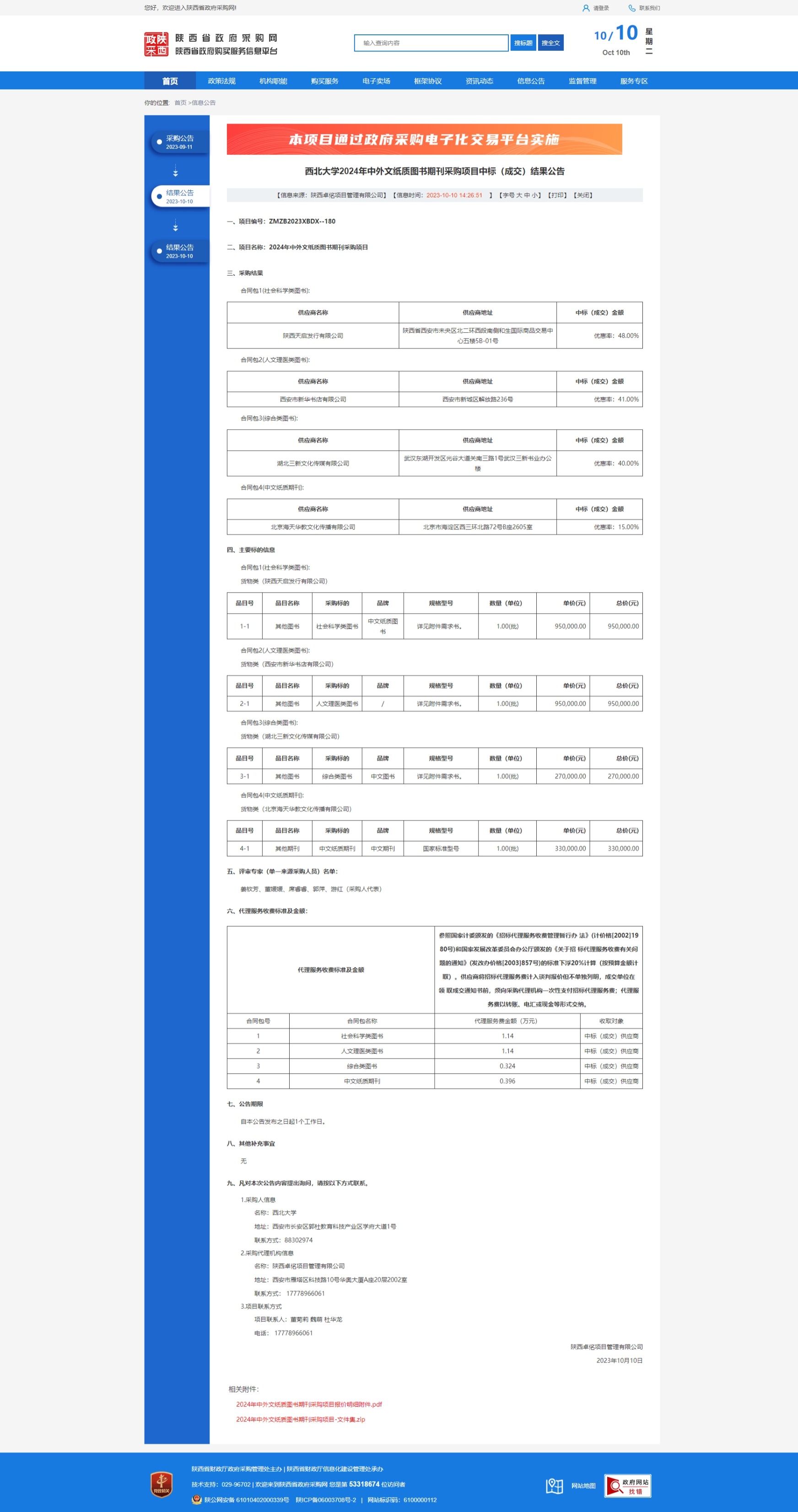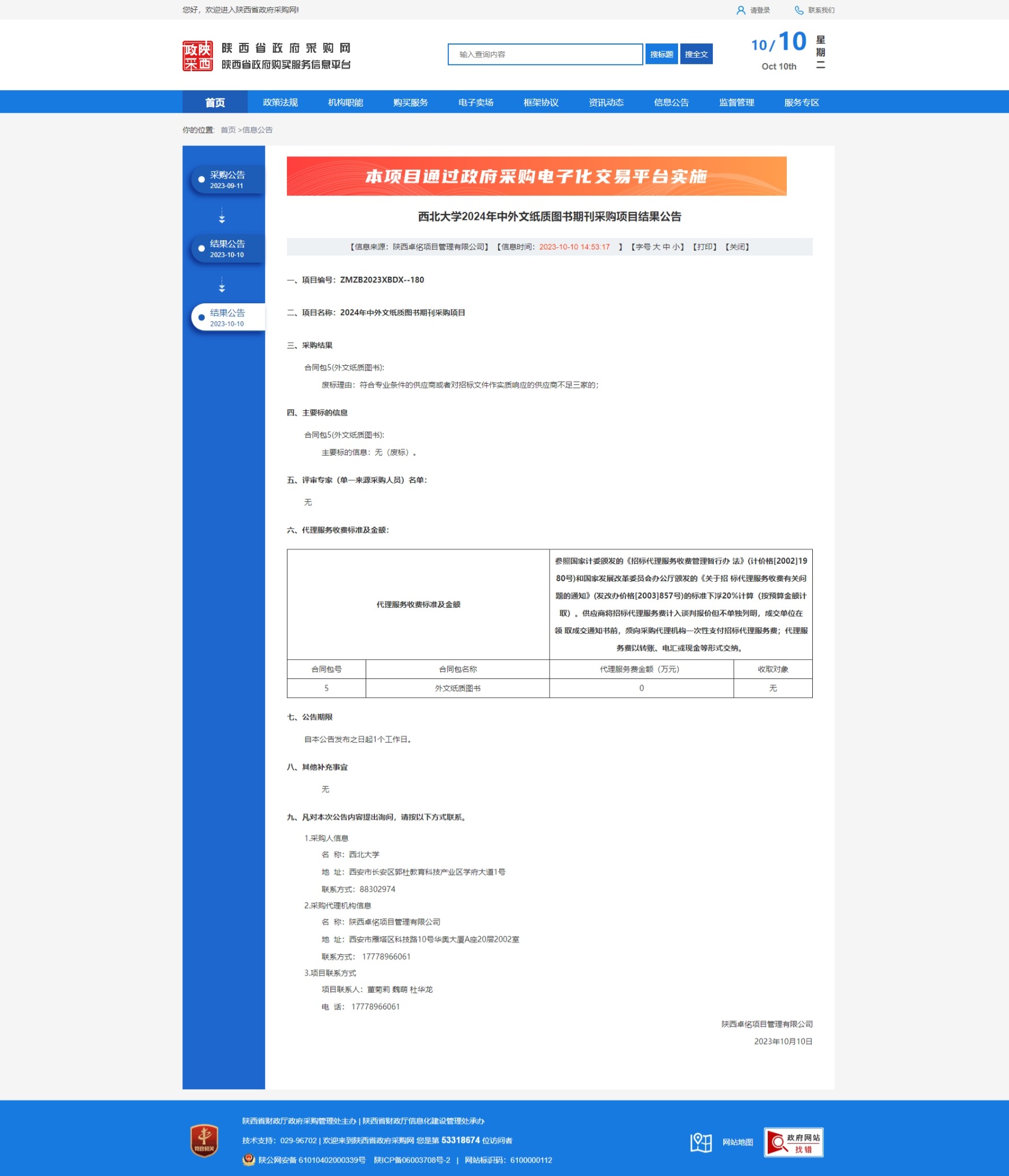 赢博官方(中国)总部2024年中外文纸质图书期刊采购项目中标(成交)结果公告 作者: 编辑:采购与招标办公室 时间:2023-10-10 原公告链接:http://www.ccgp-shaanxi.gov.cn/freecms/site/shaanxi/ggxx/info/2023/8a69c0d48b09a0fd018b183eb8b4195d.html?noticeType=001006¬iceId=f7404a69-673a-11ee-9a8e-08c0eb20c666