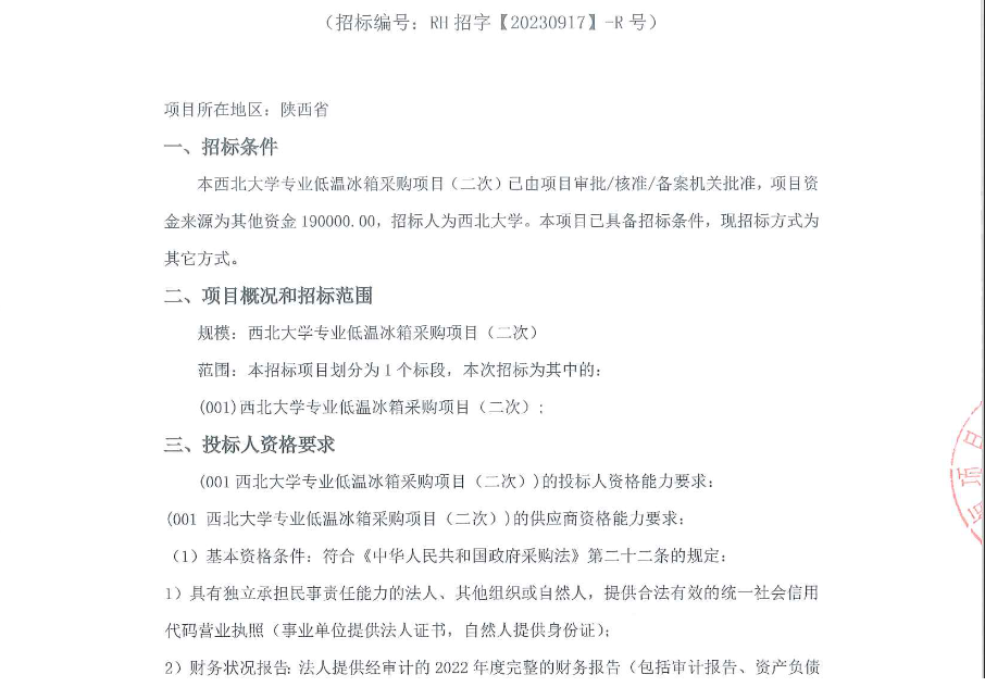 赢博官方(中国)总部专业低温冰箱采购项目(二次)竞争性磋商公告 作者: 编辑:采购与招标办公室 时间:2023-10-25 原公告链接:http://bulletin.sntba.com/biddingBulletin/2023-10-24/752921.html