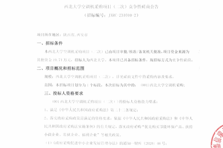 赢博官方(中国)总部空调机采购项目(二次)竞争性磋商公告