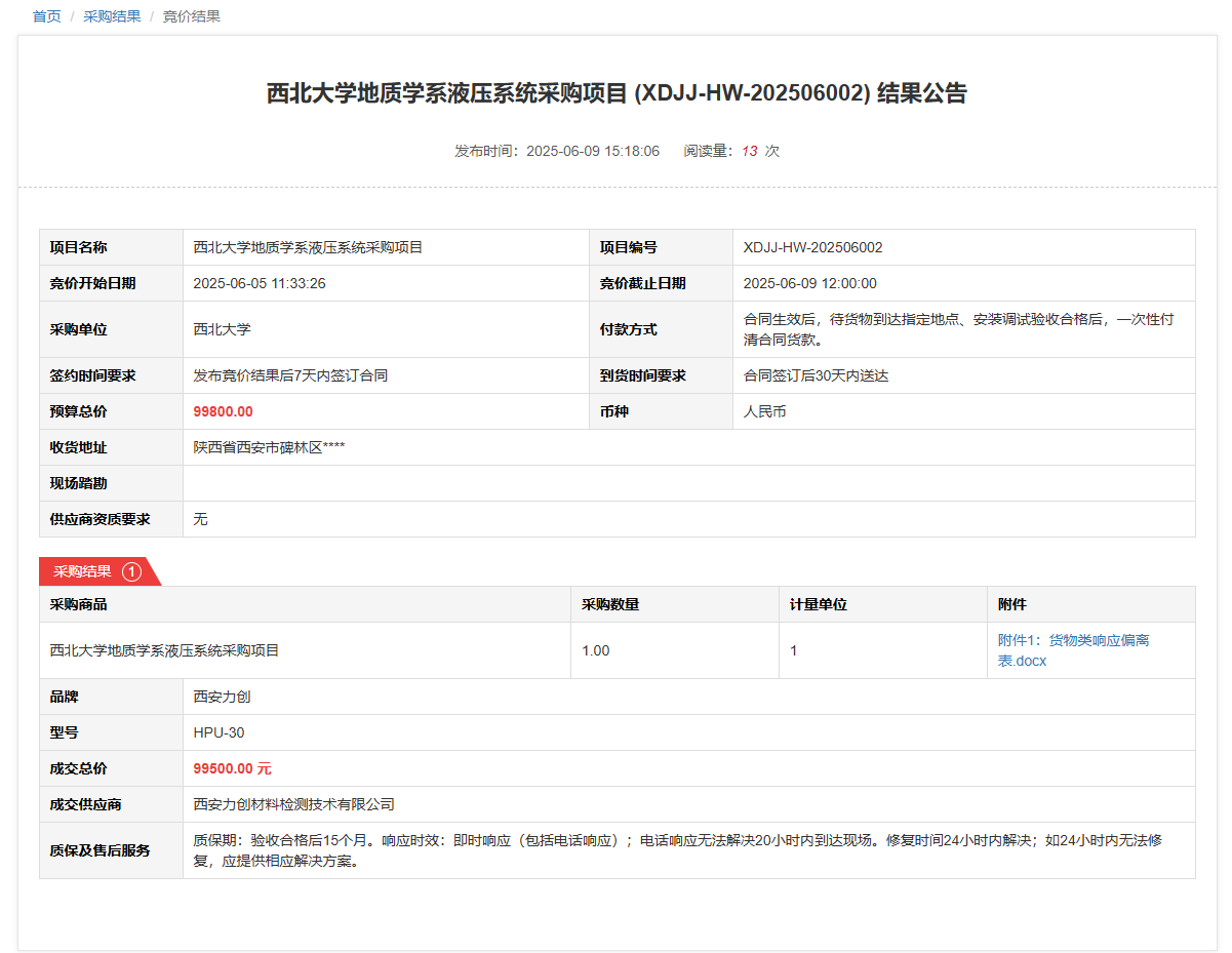 赢博官方(中国)总部地质学系液压系统采购项目(XDJJ-HW-202506002)竞价结果公告 作者:采购与招标办公室 编辑: 时间:2025-06-09 原公告链接:https://www.ejingcai.com.cn/site/bidding/detail/18744